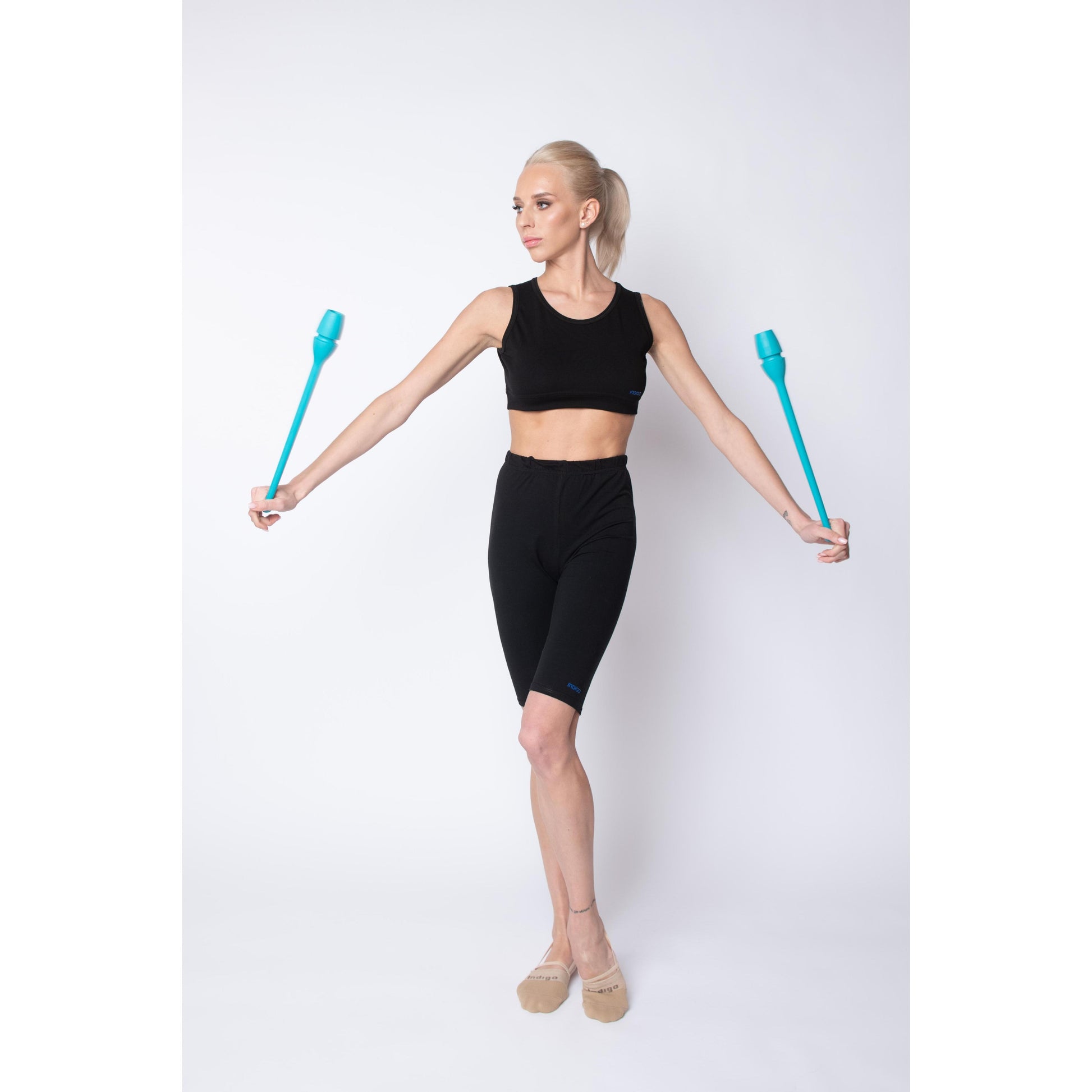Mazas engarzables HAYA INDIGO. Los palos están bien equilibrados, rebotan bien en el suelo y no se agrietan cuando se caen. El revestimiento de goma los hace menos traumáticos.